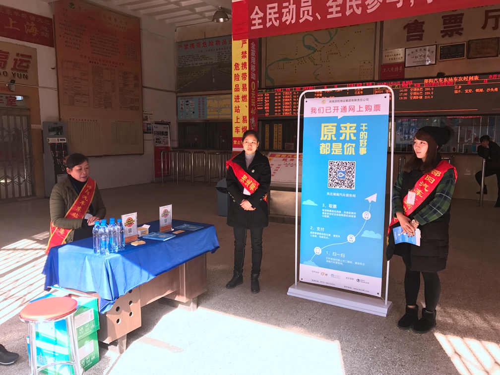第一輪推廣單位為:邵陽汽車東站、邵陽汽車南站、邵陽汽車北站、隆回汽車東站、隆回汽車西站。12月下旬邵陽湘運旗下所有車站全部進(jìn)行推廣。以下為8日推廣活動圖片。